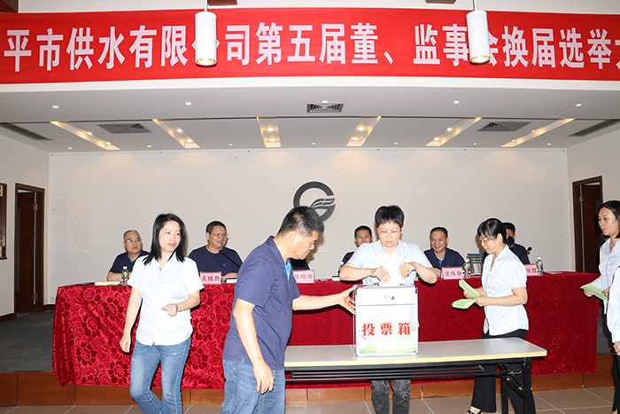 ???????5月12日下午,公司第五屆董事會、監(jiān)事會換屆選舉大會在公司六樓大會堂召開。會議由公司董事吳植煦主持,出席的股東84人,代表97.05%的股份。????會上,上一屆董事長何振光代表董事會回顧了任期內(nèi)的主要經(jīng)營做法,包括抓好供水主業(yè)和安裝業(yè)務(wù)的經(jīng)營管理、開展穩(wěn)健的資本資產(chǎn)運營、不斷推進公司規(guī)范化管理、抓好公司黨建和企業(yè)文化建設(shè)、加強公司與政府/銀行/用戶/員工等四大關(guān)系的建設(shè),