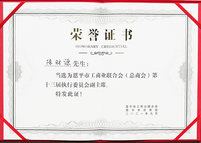 9月29日下午,市工商聯(lián)(總商會(huì))第十三次會(huì)員代表大會(huì)召開(kāi),選舉產(chǎn)生了市工商聯(lián)(總商會(huì))第十三屆領(lǐng)導(dǎo)班子,我公司總經(jīng)理陳財(cái)源當(dāng)選為恩平市工商業(yè)聯(lián)合會(huì)第十三屆執(zhí)行委員會(huì)副主席。 市委書記黎沛榮、市人大常委會(huì)主任李健忠、市政協(xié)主席禤纘靈、市領(lǐng)導(dǎo)吳彩堂出席會(huì)議,為新當(dāng)選的領(lǐng)導(dǎo)班子成員頒發(fā)當(dāng)選證書及名譽(yù)職務(wù)聘書。江門市工商聯(lián)黨組書記曾錦俊對(duì)恩平市工商聯(lián)(總商會(huì))新一屆領(lǐng)導(dǎo)班子表示祝賀,希望他們要繼續(xù)發(fā)揚(yáng)成績(jī),把