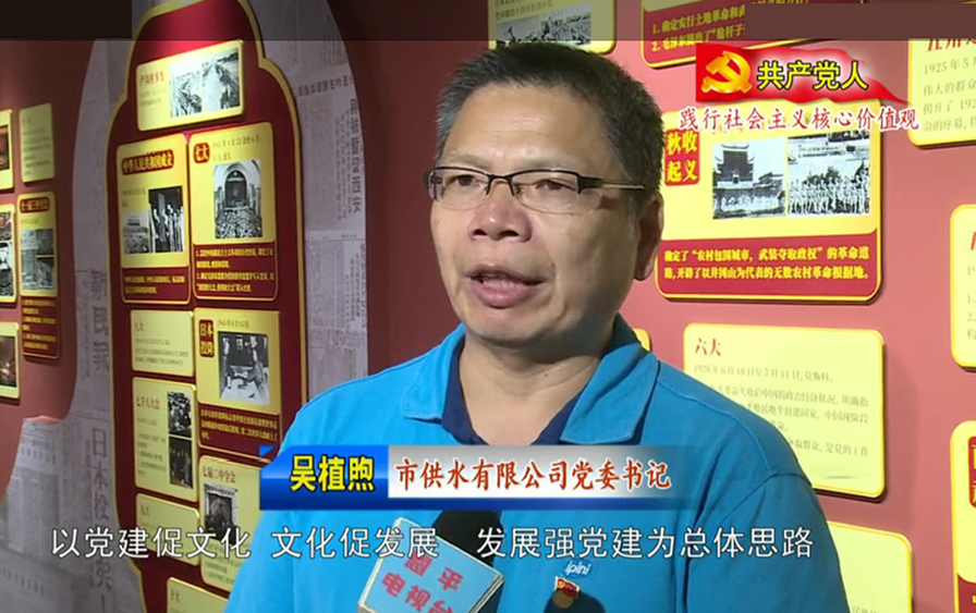7月底至8月初,市委組織部聯(lián)合恩平廣播電視臺開辦《共產(chǎn)黨人》專題欄目,集中宣傳一批先進集體和個人。經(jīng)過層層篩選,我公司黨委成為市企業(yè)黨工委唯一一家受訪的先進基層黨組織?!豆伯a(chǎn)黨人》節(jié)目組先后在公司黨群學習室、黨建展廳、城區(qū)制水工藝、水質(zhì)檢測中心、“戶戶通”自來水工程施工現(xiàn)場取景拍攝,并采訪了公司黨委書記吳植煦、黨員代表鄺順強、沙湖鎮(zhèn)水樓村委會塘下村村民代表,多角度宣傳了我公司黨委牢記供水使命、強抓基層黨建的形象。