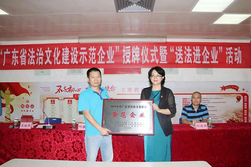 近日,省普法辦、省司法廳、省工信廳、省國資委、省工商聯、省總工會聯合公布了2019年廣東省“法治文化建設示范企業(yè)”評選結果,我公司以扎實的創(chuàng)建成果,通過層層考核和篩選,最終被評選為廣東省“法治文化建設示范企業(yè)”,成為江門市13家上榜企業(yè)之一,也是恩平市唯一一家上榜企業(yè)。創(chuàng)建法治文化建設示范企業(yè),旨在不斷提升企業(yè)依法經營、依法維權、依法辦事、依法管理的水平,將企業(yè)的生產、經營、決策、管理等各個環(huán)節(jié)納入法治的軌道,促進和保障企業(yè)持續(xù)、健康發(fā)展。今后,我