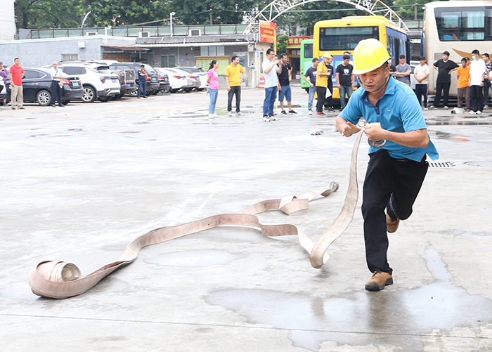 消防水帶接駁滅火比賽則要求指令發(fā)出后參賽隊員立即進行消防帶展開、接駁和跑到指定地點,最后以規(guī)范動作保持持槍噴水滅火姿勢。其中,水帶要全面展開,不能打結(jié),駁喉要緊扣。在該輪比賽,梁超全和溫韋津排第四位參賽,他們觀察了前三組的比賽過程,并結(jié)合平時工作中操作使用消防水帶的經(jīng)驗,迅速商定了比賽策略。開賽后,溫韋津在起點將消防水帶展開,拋到位于20多米外的中點處,并迅速與另一段水帶駁喉接好,梁超全隨即接力把水帶另一端拉伸到終點的消防栓取水口,迅速地完成了全套比賽動作。兩人動作嫻熟,配合得當(dāng),快速精準(zhǔn)地完成了比賽,表現(xiàn)良好,得到了現(xiàn)場評委的贊揚。根據(jù)比賽規(guī)則,以兩個項目的總用時評定名次,完成耗時少為優(yōu)。梁超全和溫韋津組成的參賽小組總體表現(xiàn)可圈可點,獲得了三等獎的好成績,為公司取得了榮譽。