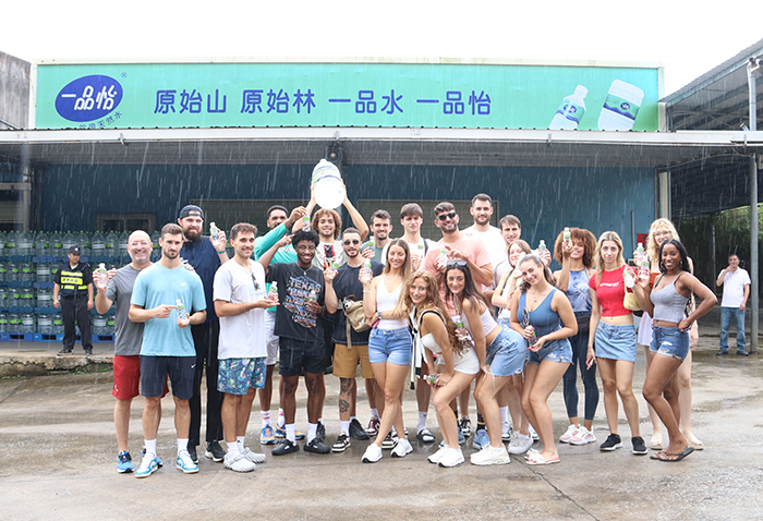 8月4日上午,參加2025中外職業(yè)男子籃球挑戰(zhàn)賽的西班牙職業(yè)男籃全明星隊(duì)與美國洛杉磯熱浪啦啦隊(duì)一行30余人,專程前往賽事戰(zhàn)略合作單位——恩平市七星坑山泉有限公司參觀交流。